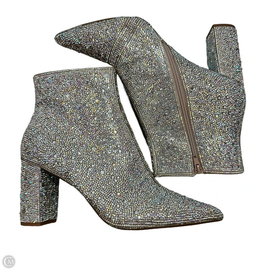 Boots Ankle Heels By Betsey Johnson In Silver, Size: 11