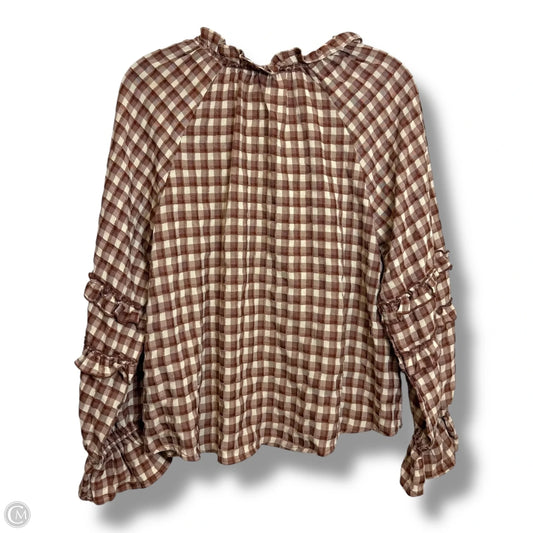 Top Long Sleeve By Blu Pepper In Checkered Pattern, Size: S