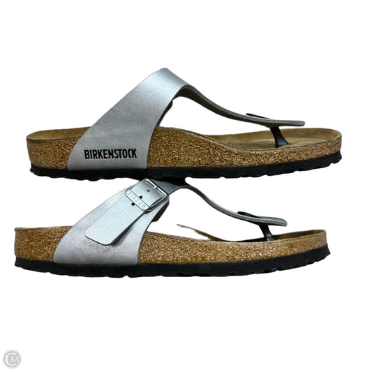 Sandals Flats By Birkenstock In Silver, Size: 7