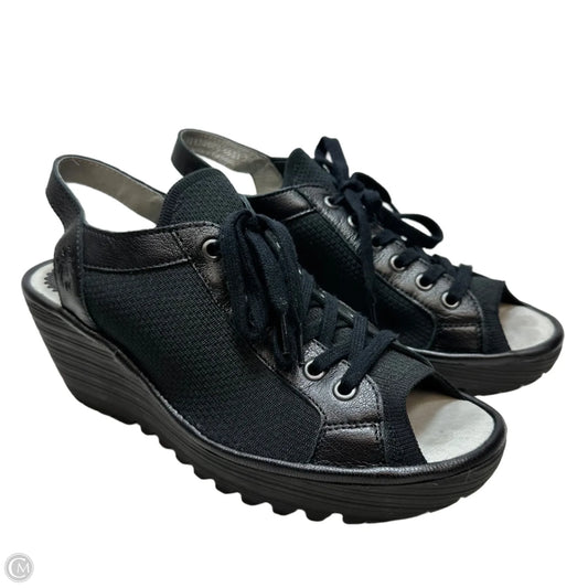 Sandals Heels Wedge By Fly London In Black, Size: 8.5
