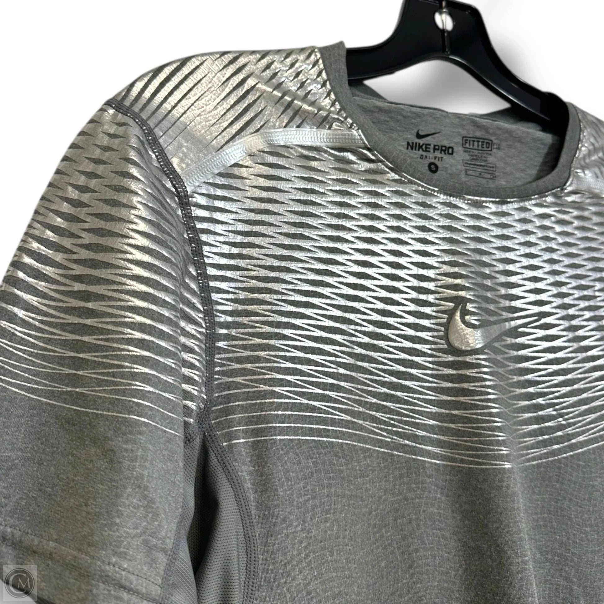 Athletic Top Short Sleeve By Nike Apparel In Silver, Size: S