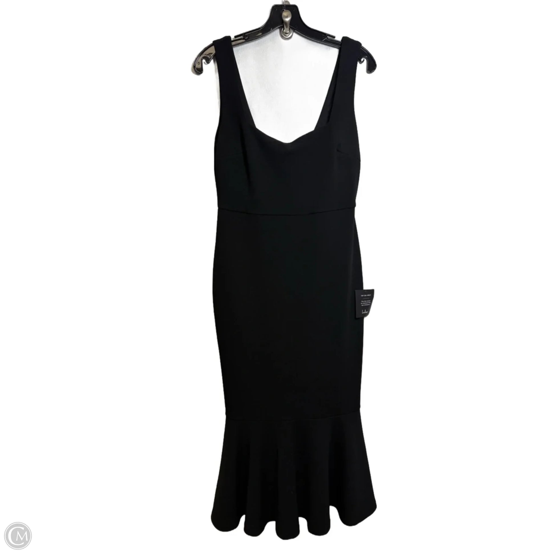 Chic black midi dress by Lulus, size M, perfect for any party vibe.