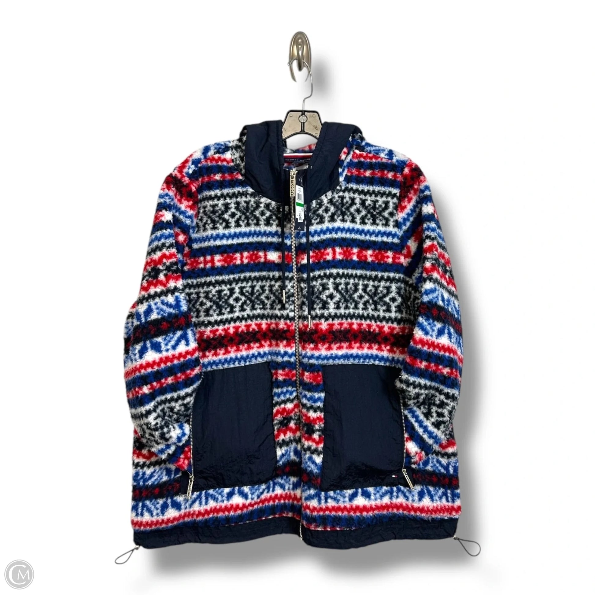 Jacket Fleece By Tommy Hilfiger In Blue Red & White, Size: L