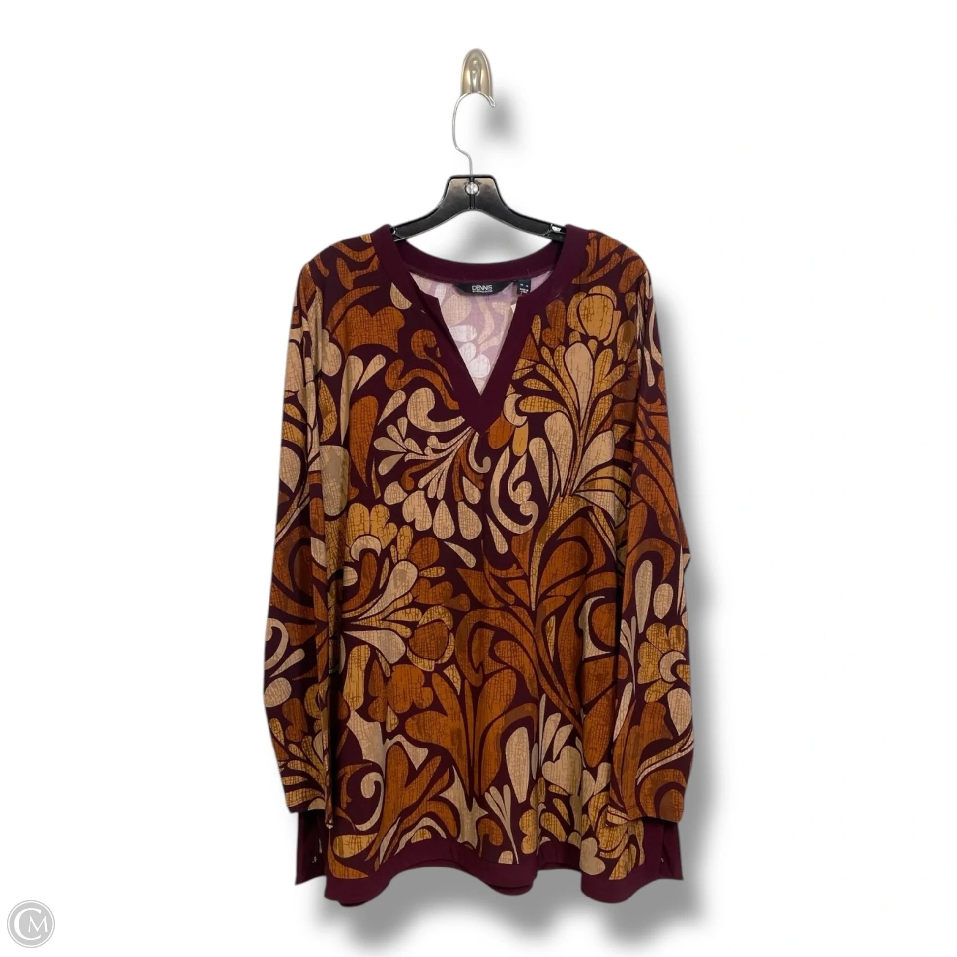 Tunic Long Sleeve By Dennis Basso Qvc In Brown, Size: Xl